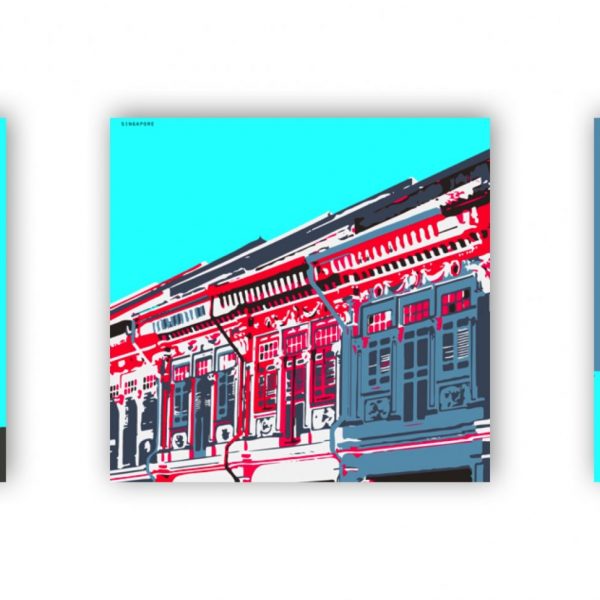 This lovely set in pastel colours is a tribute to the beautiful old buildings of Singapore.