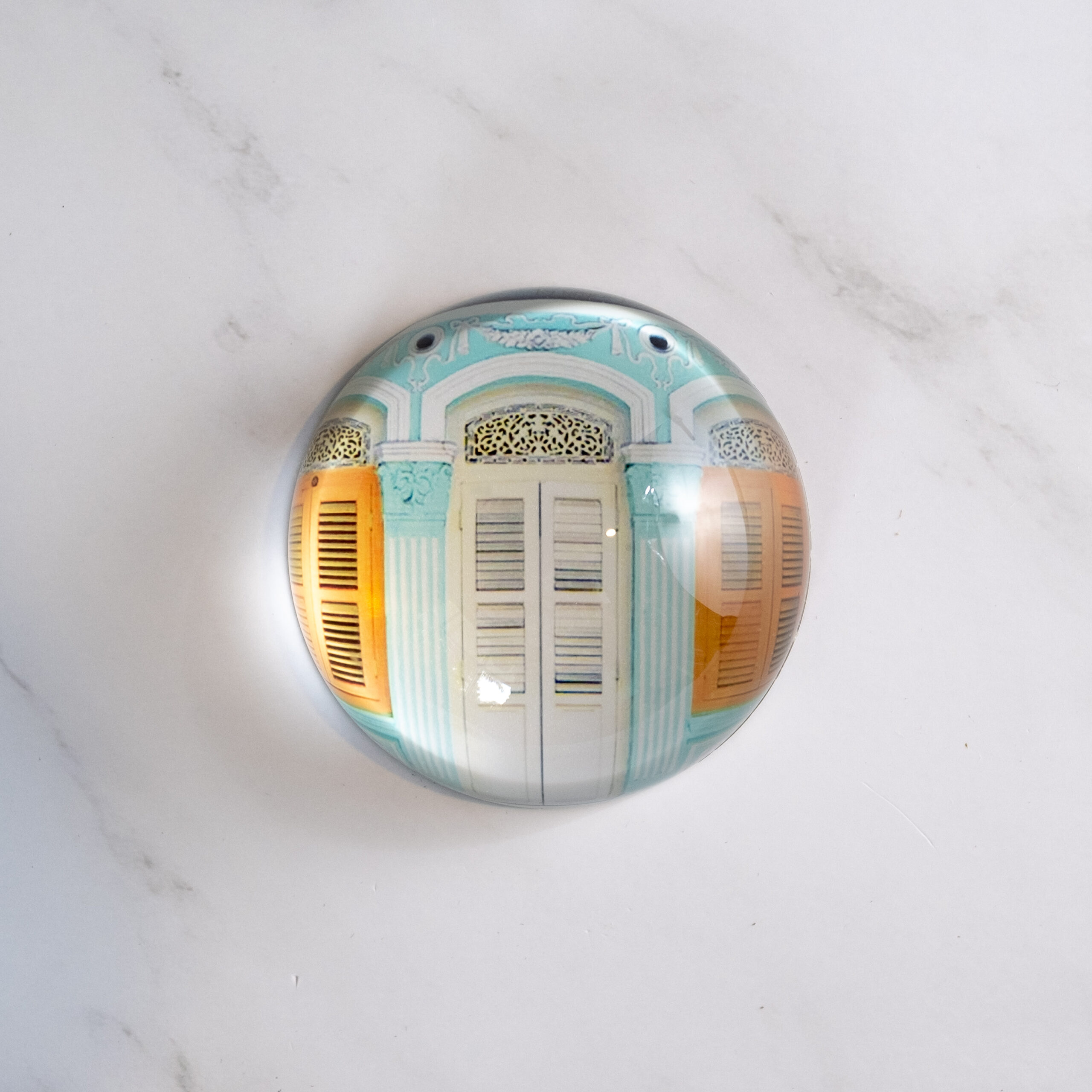Glass paper weight with our favourite Singapore designs, comes packed in a small metal box