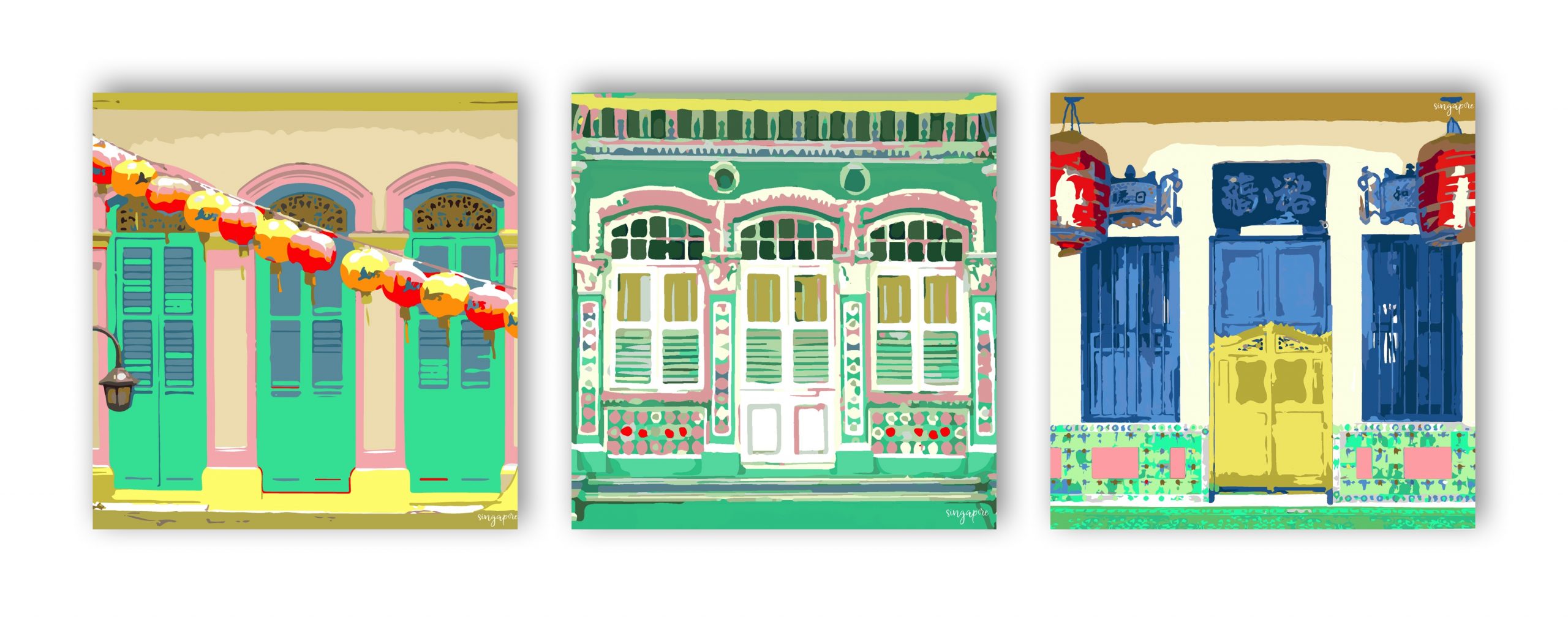 HomeSALE - Wall Art SALE – Mint Shophouse Trio (30×30)
