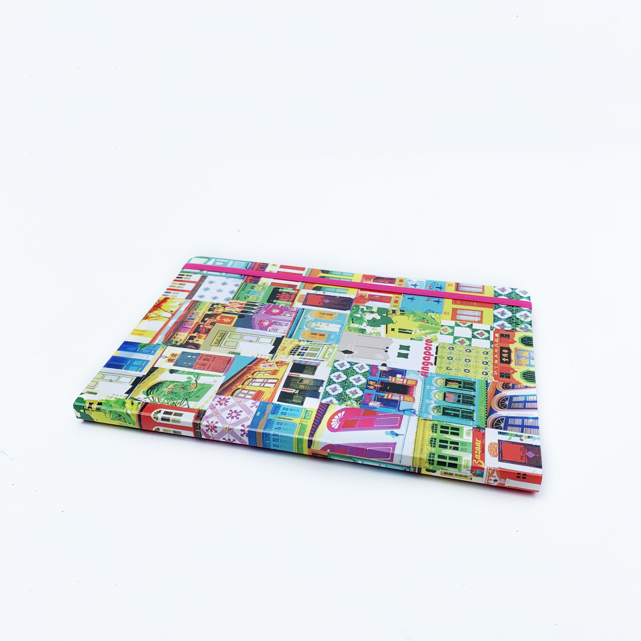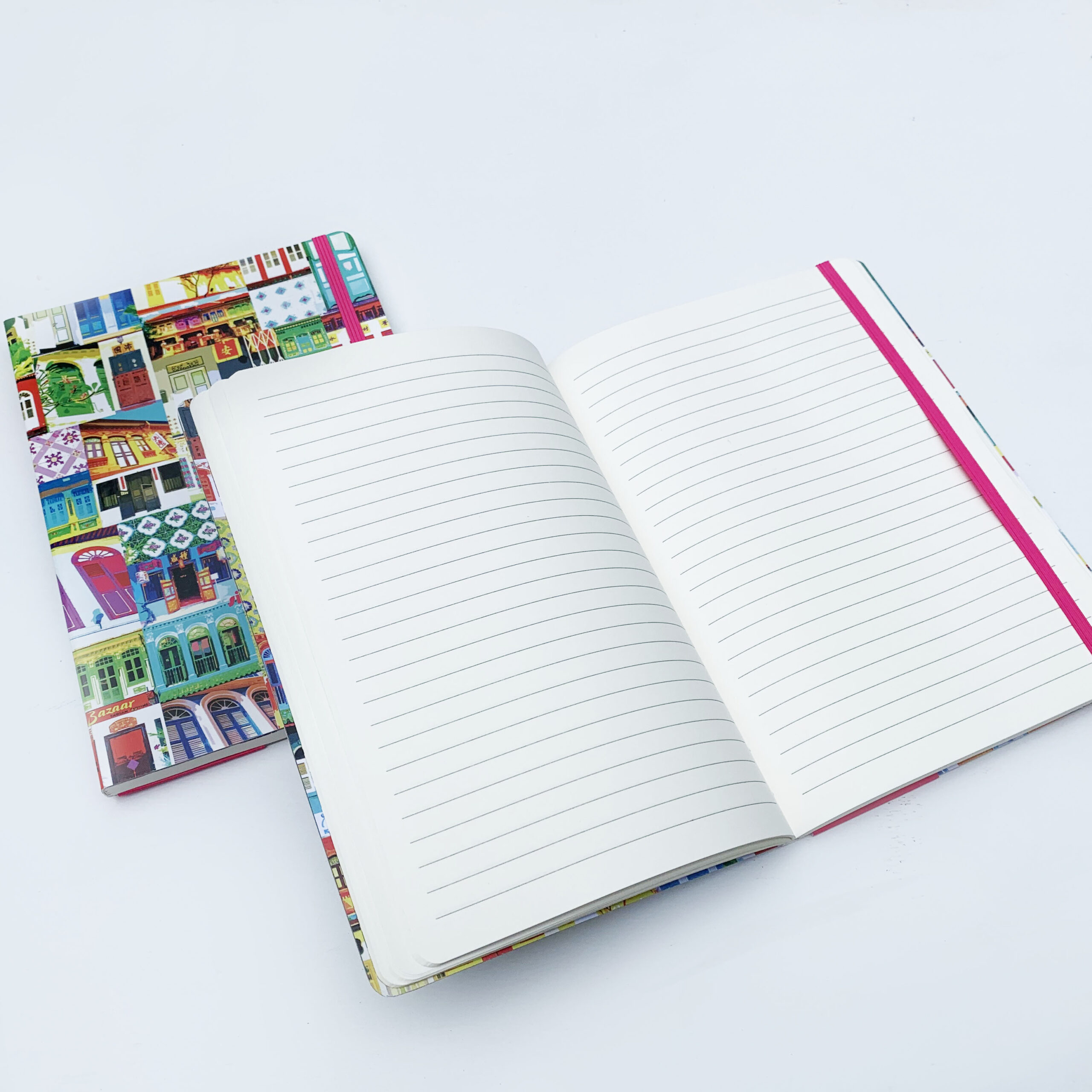 Great, handy, A5 size notebook with MemoryBoards shophouse design. Hard cover & lined pages.